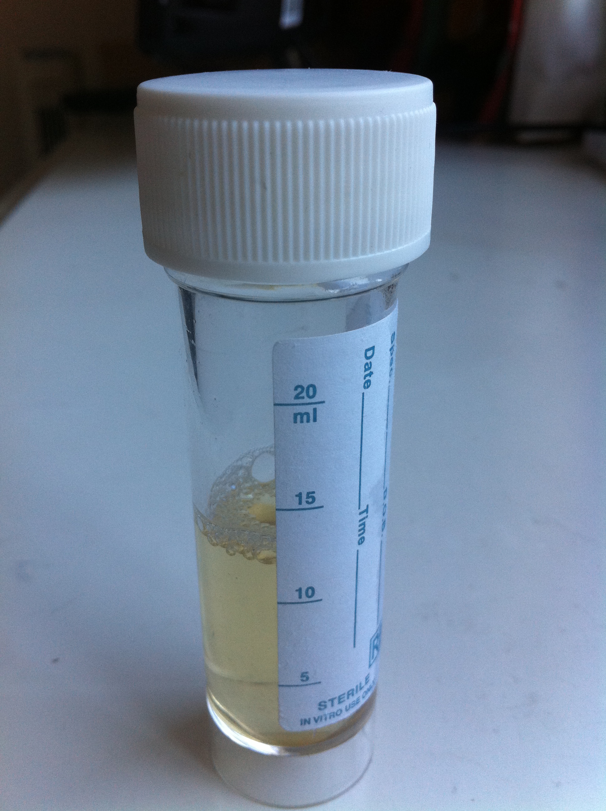 And she presents me with a urine sample.